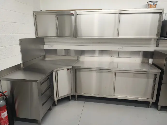Plans de travail, rangements, structures sur mesure en acier inoxydable.