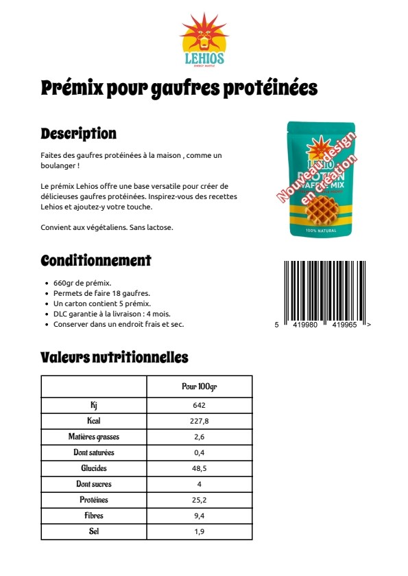 *FF*LEHIOS - PREMIX POUR GAUFRES PROTEINEES 660GRS POUR+/-18 GAUFRES